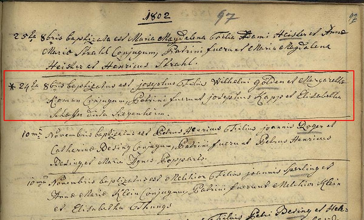 Quelle: Taufeintrag lt. Kirchenbuch der Kirche St. Martin (Bonner Münster) zu Bonn Seite 97 vom 24.10.1802