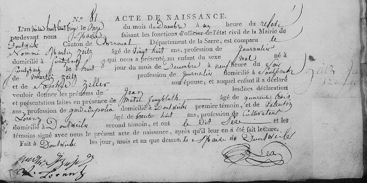 Quelle: Geburtsregister Nr. 81/1813 Zivilstandsregister Dudweiler
