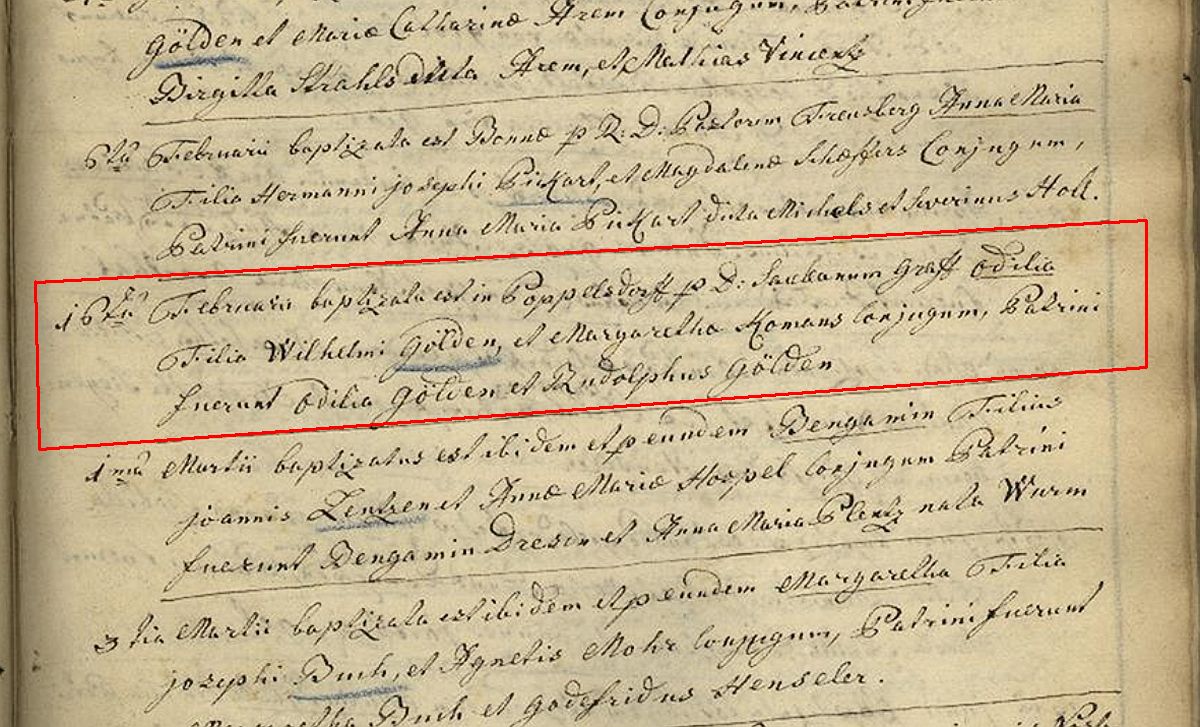 ~ 16.02.1789 Bonn, St. Martin (Münster), Taufpaten: Ottilia Gölden und Rudolphus Gölden