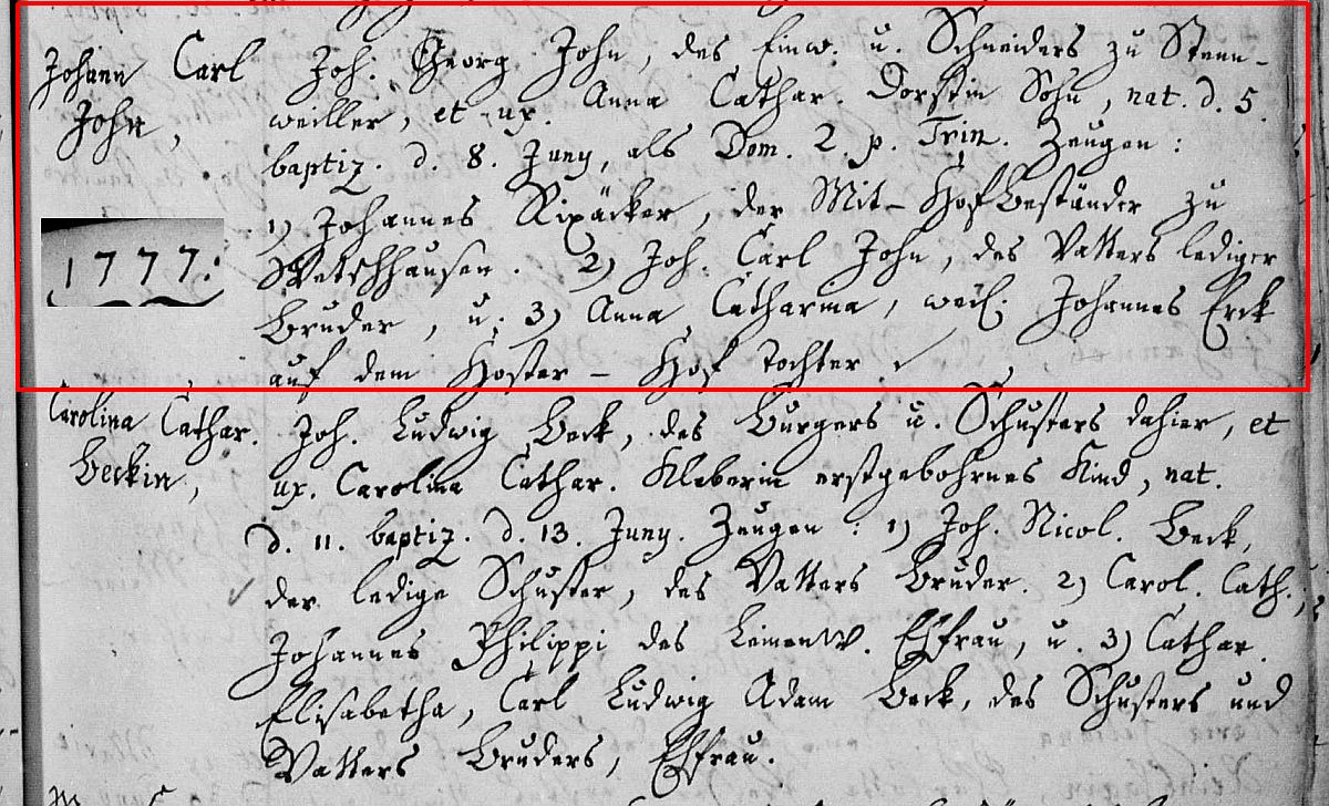 Quelle: Taufeintrag 1777 ev. Kirchengemeinde Ottweiler