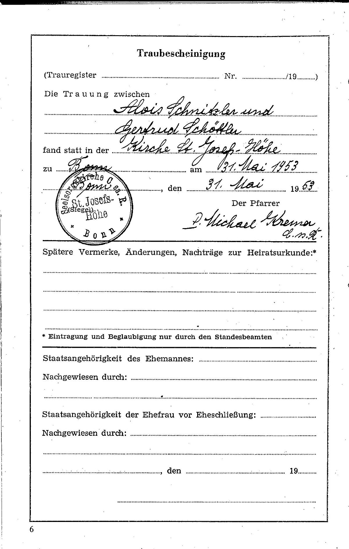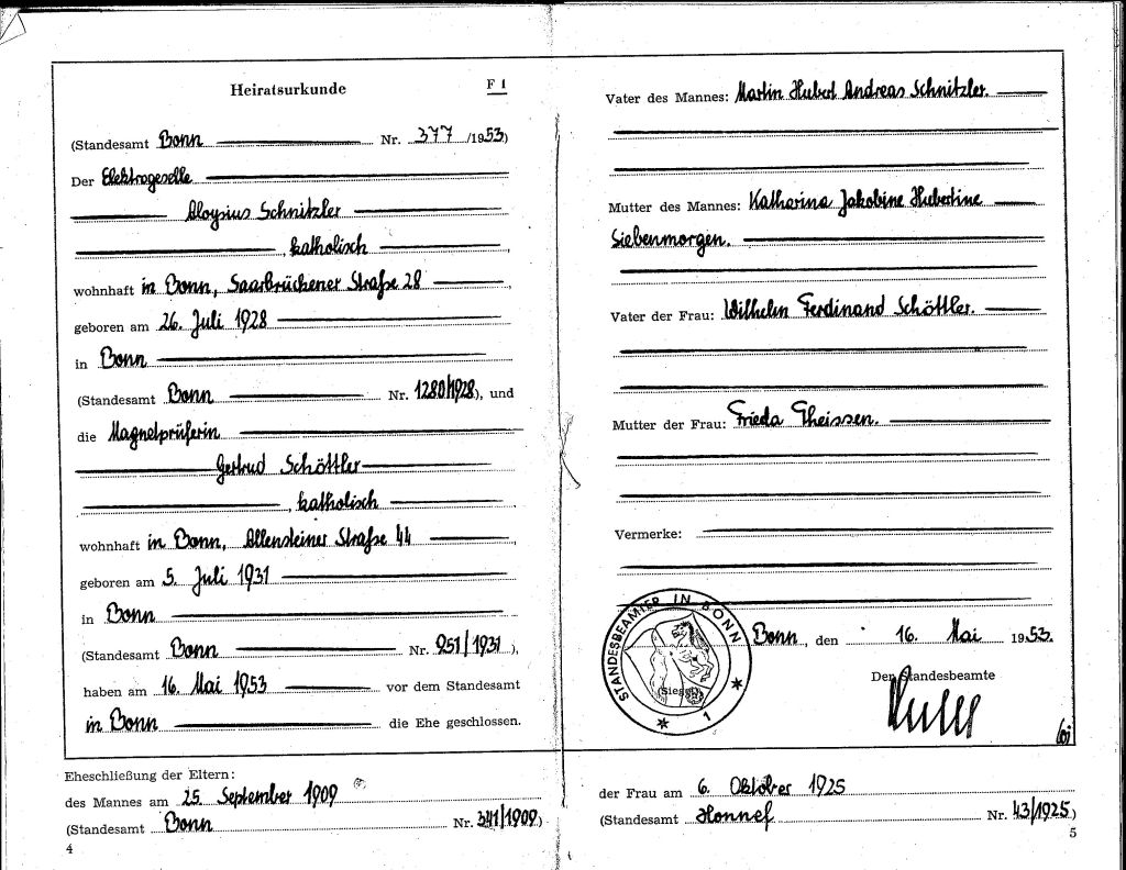 oo 16.05.1953 Bonn Gertrud Schnitzler geb. Schöttler