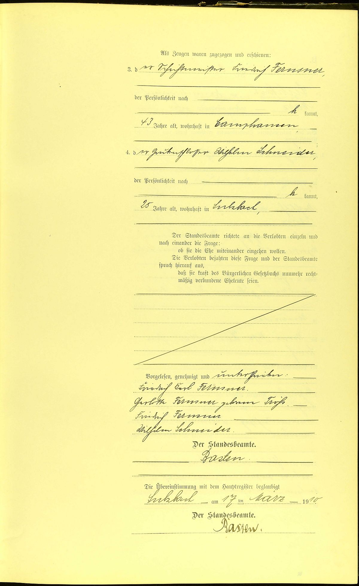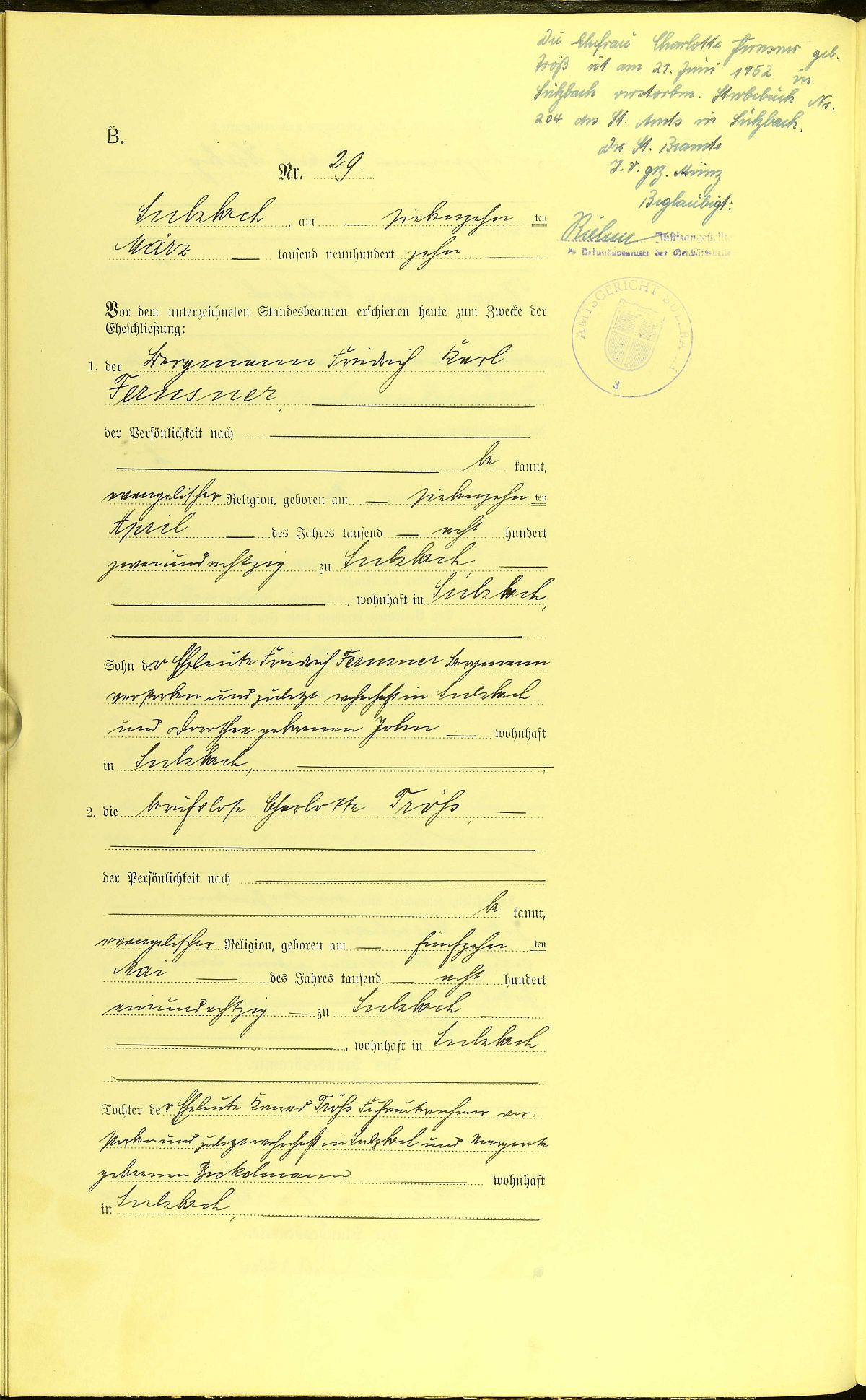 Heiratsregister Nr. 29/1910 Standesamt Sulzbach