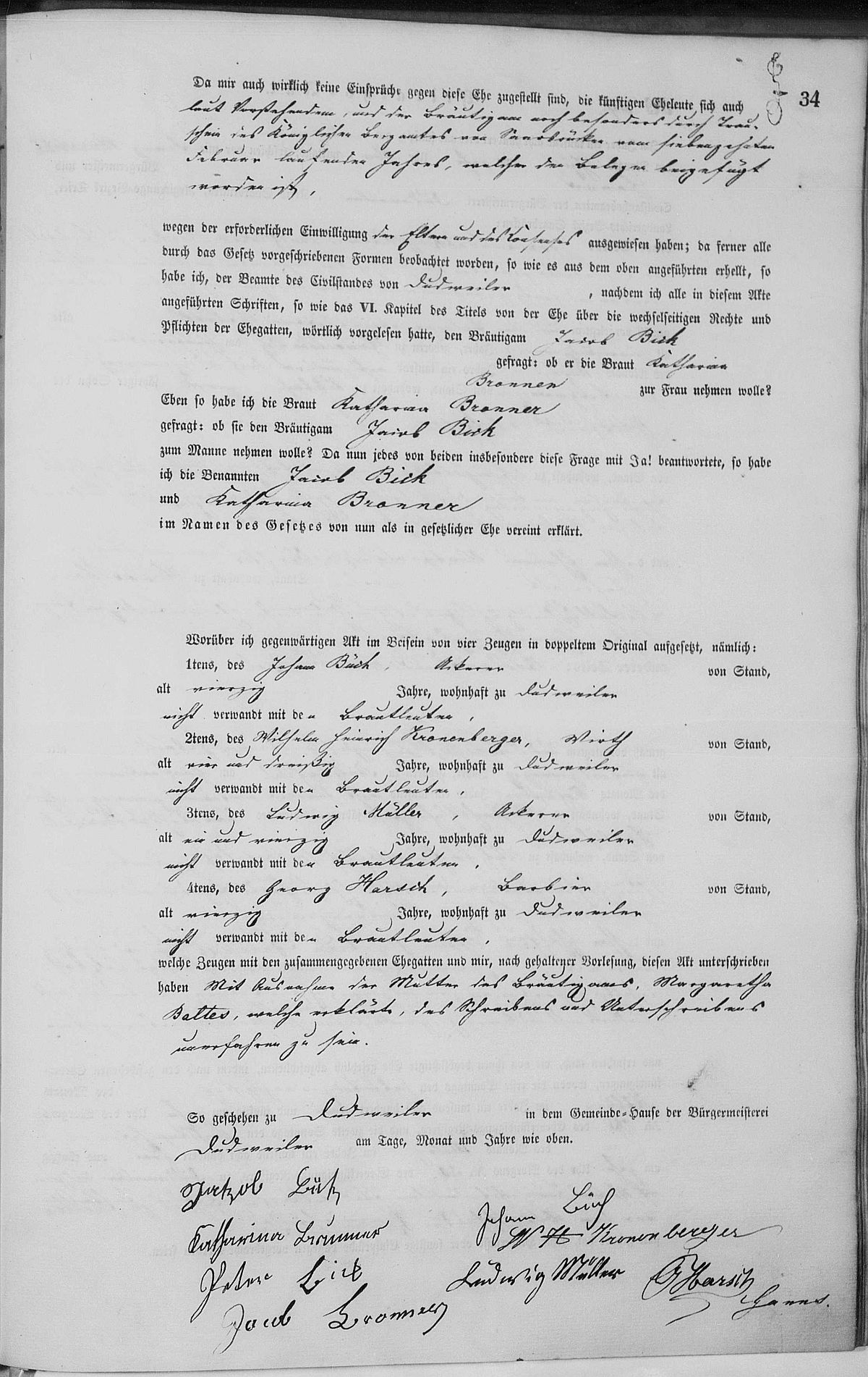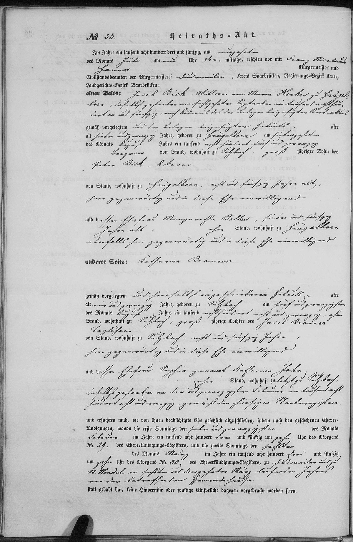 Heiratsregister Nr. 33/1853 Zivilstandsregister Dudweiler