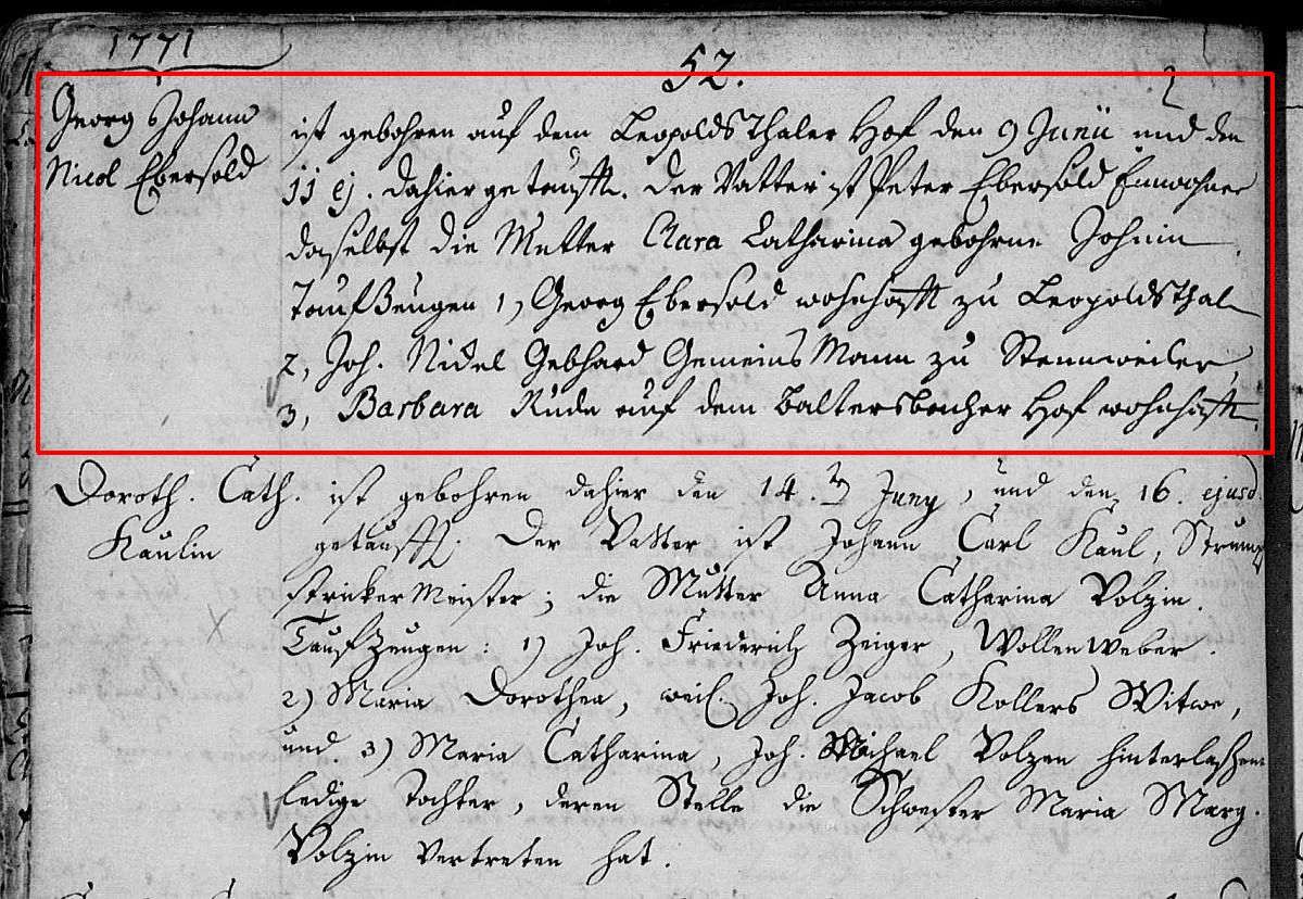 Quelle: Taufeintrag 1771 der Ev. Kirchengemeinde Ottweiler