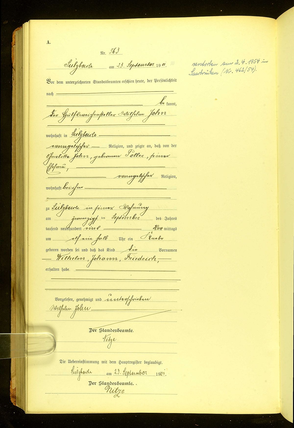 Quelle: Geburtsurkunde Nr. 563/1901 Standesamt Sulzbach