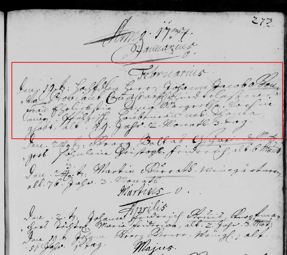 Sterbeeintrag ev. Gesamtkirchengemeinde Heilbronn 1684-1783 Seite 273