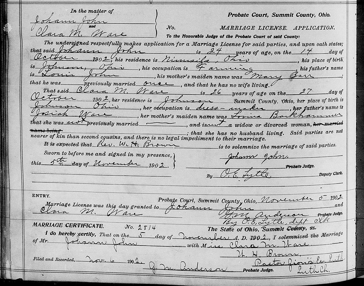oo 05.11.1902 Summit, Ohio, USA John Johns