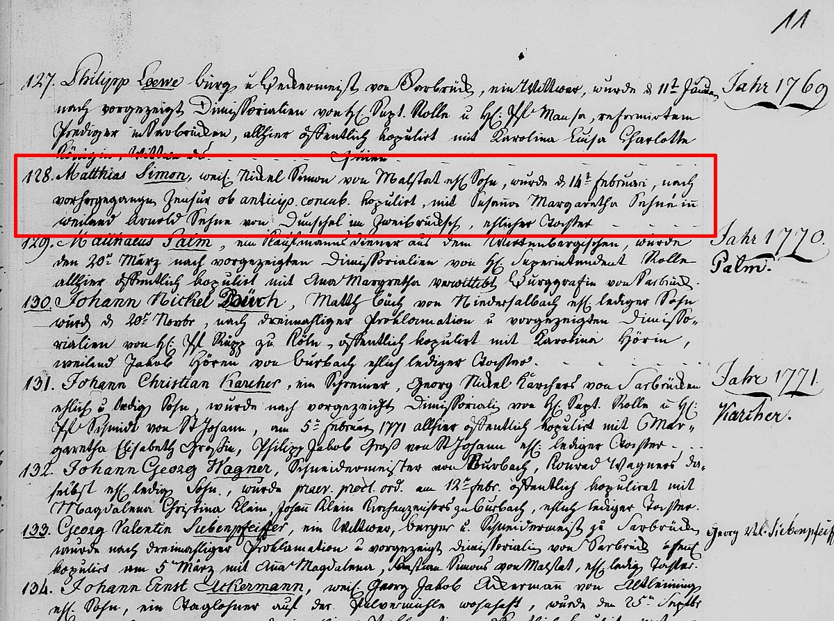 oo 14.02.1769 Malstatt/Saarbrücken Johann Matthias Simon