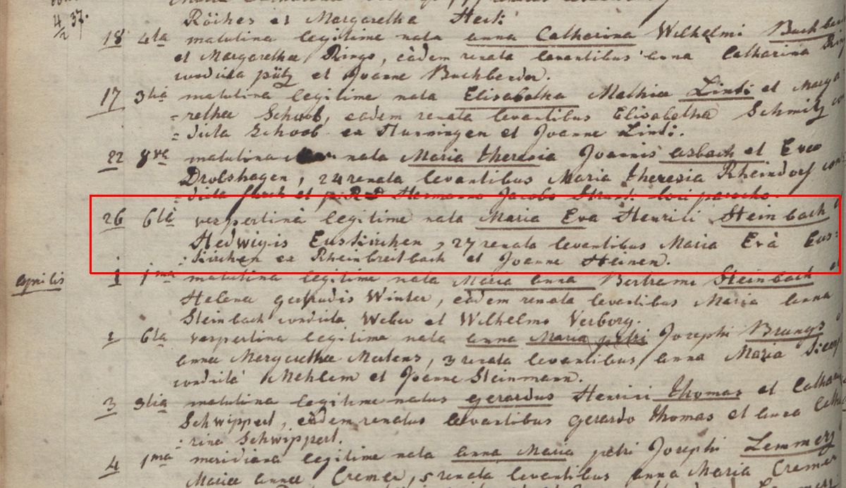 ~ 26.03.1822 Honnef, St. Johann Baptist, Taufpaten: Maria Eva Euskirchen und Joenne Heinen