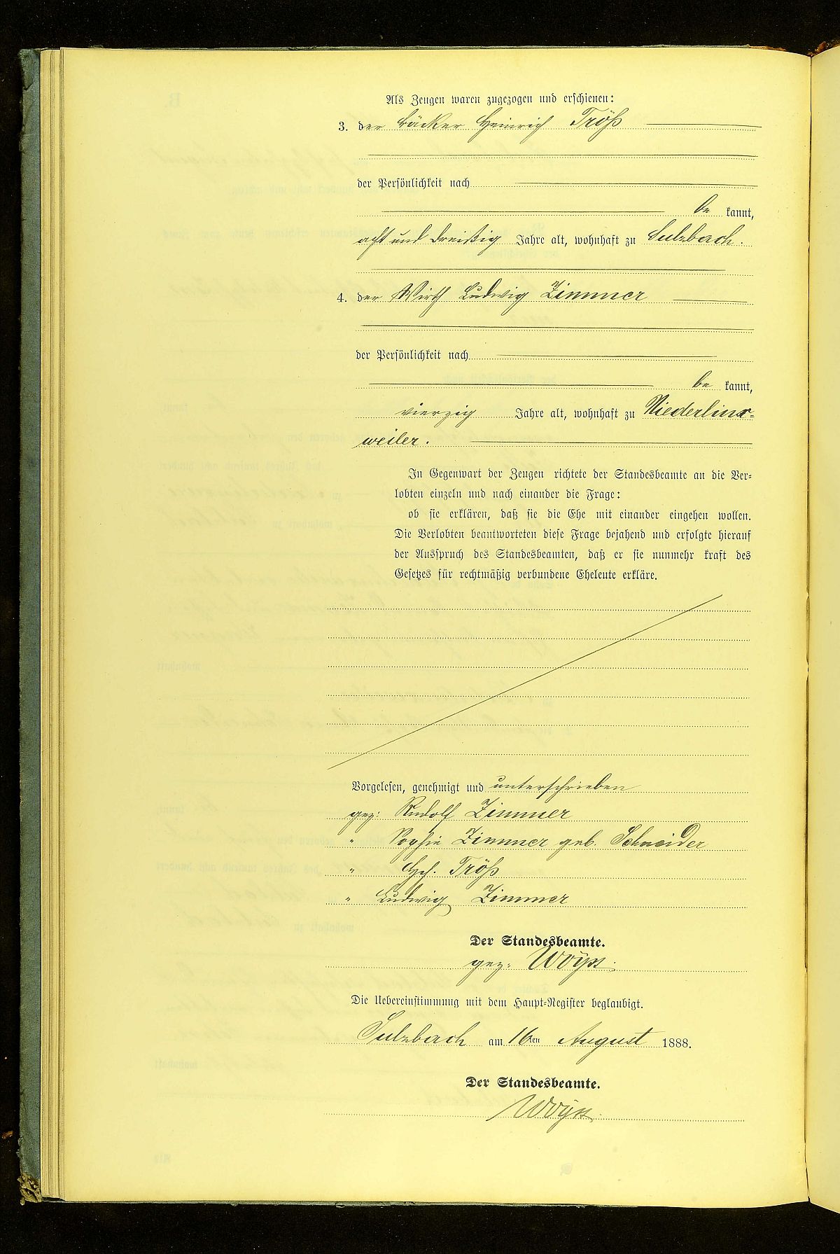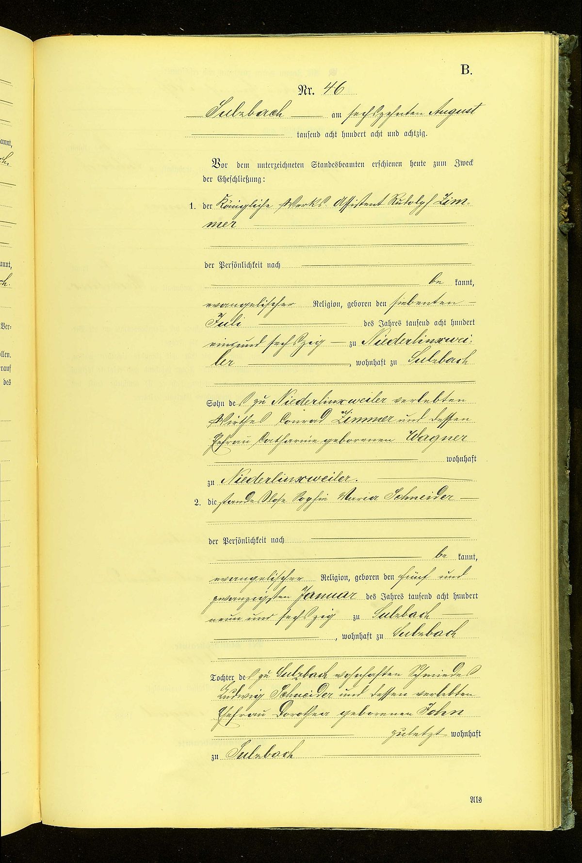Quelle: Heiratsurkunde Nr. 46/1888 Standesamt Sulzbach