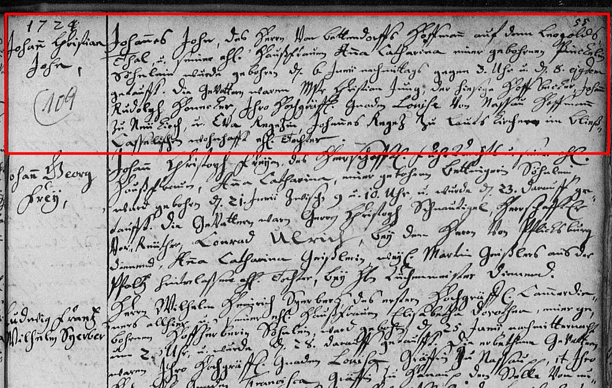 Quelle: Taufeintrag 1724 der Ev. Kirchengemeinde Ottweiler