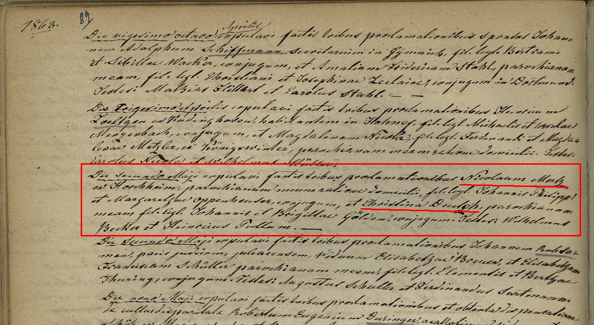Quelle: Heiratseintrag Civilstandnachrichten lt. "Bonner Zeitung" vom 03.05.1863