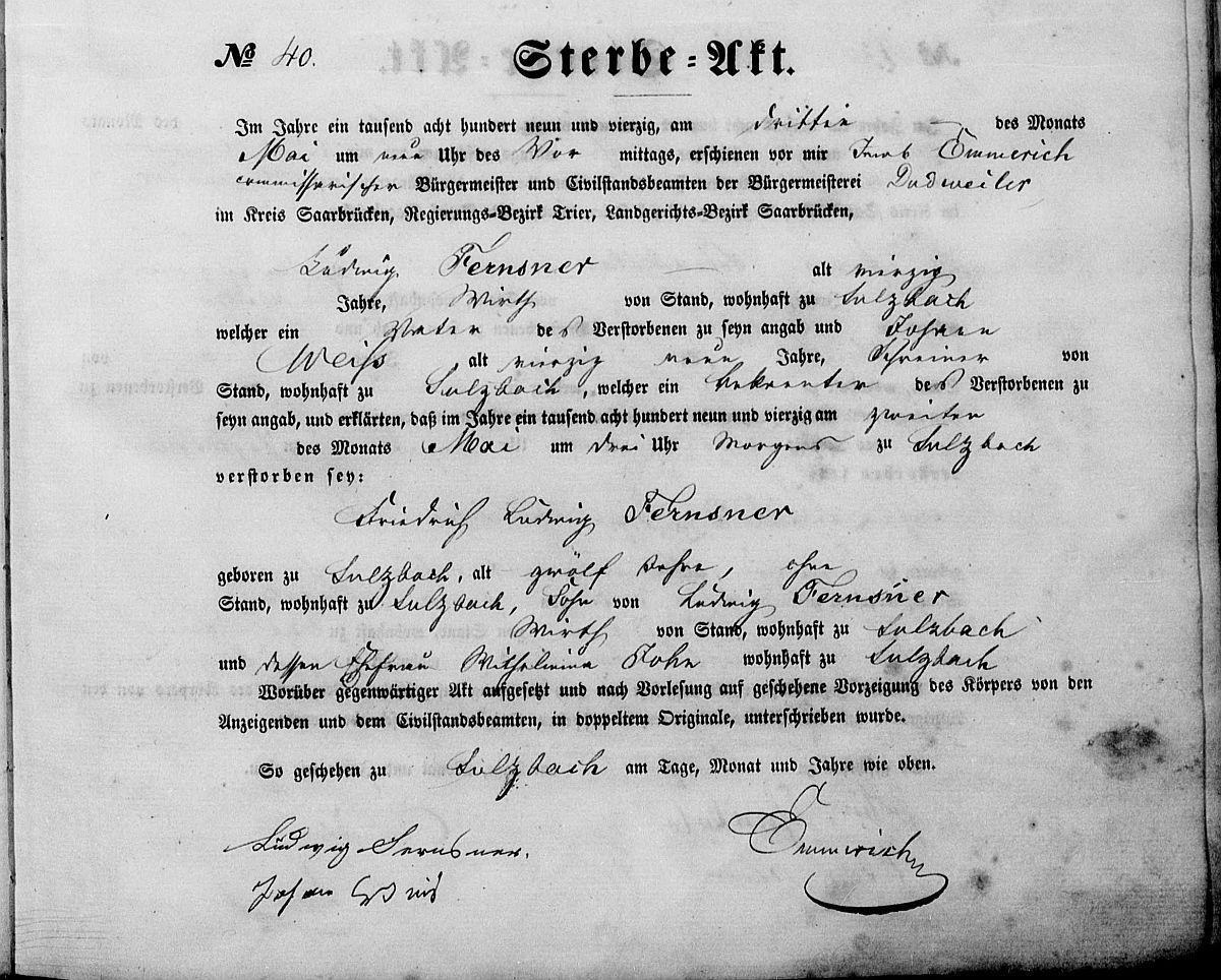 Sterberegister Nr. 40/1849 Zivilstandsregister Dudweiler