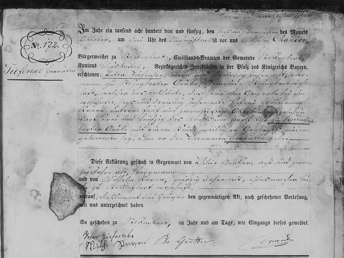 Quelle: Geburtsregister Nr. 172/1853 Zivilstandsregister Sankt Ingert