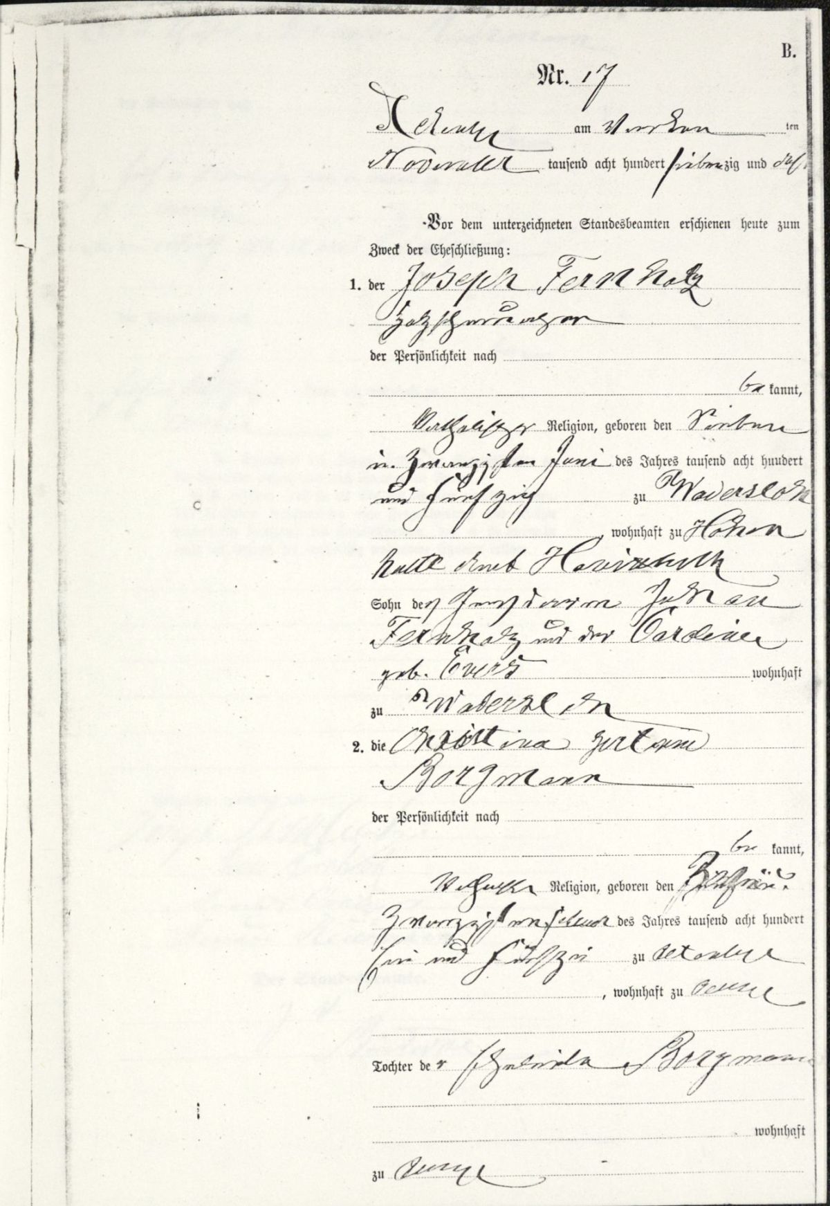 Heiratsregister Nr. 17/1878 Standesamt Altenberge