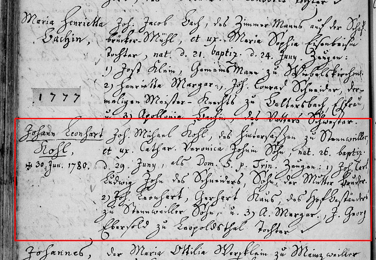Quelle: Taufeintrag 1777 der ev. Kichengemeinde Ottweiler