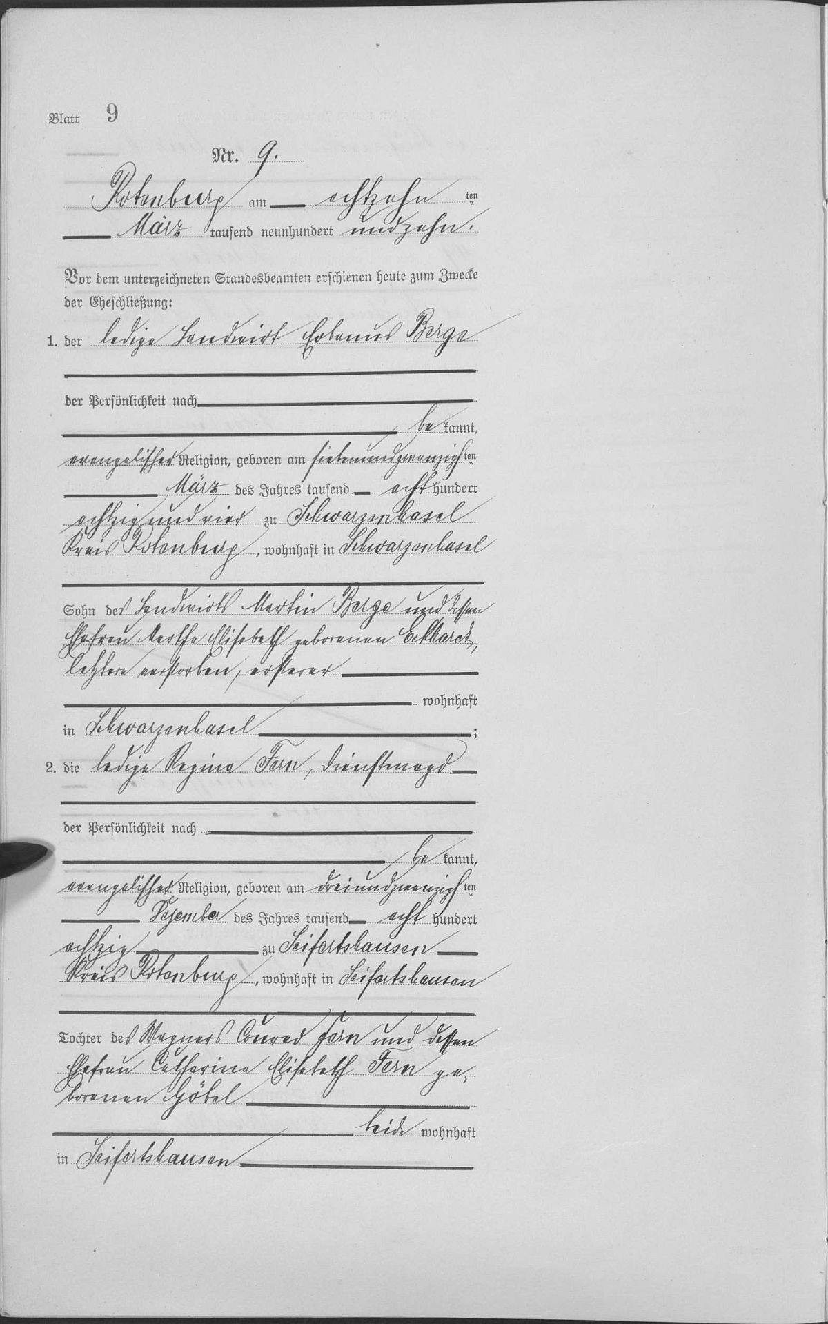 Quelle: Heiratsurkunde Rotenburg a.d. Fulda Nr. 9/1910