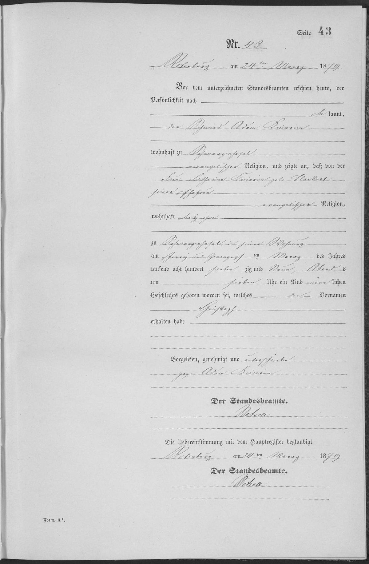Quelle: Geburtsregister Standesamt Rotenburg a.d. Fulda Nr. 43/1879