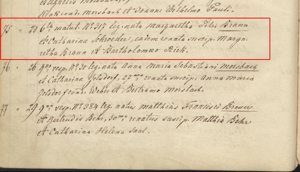 ~ 20.11.1809 Honnef, St. Johann Baptist, Taufpaten: Margaretha Braun und Bartholomae Riek