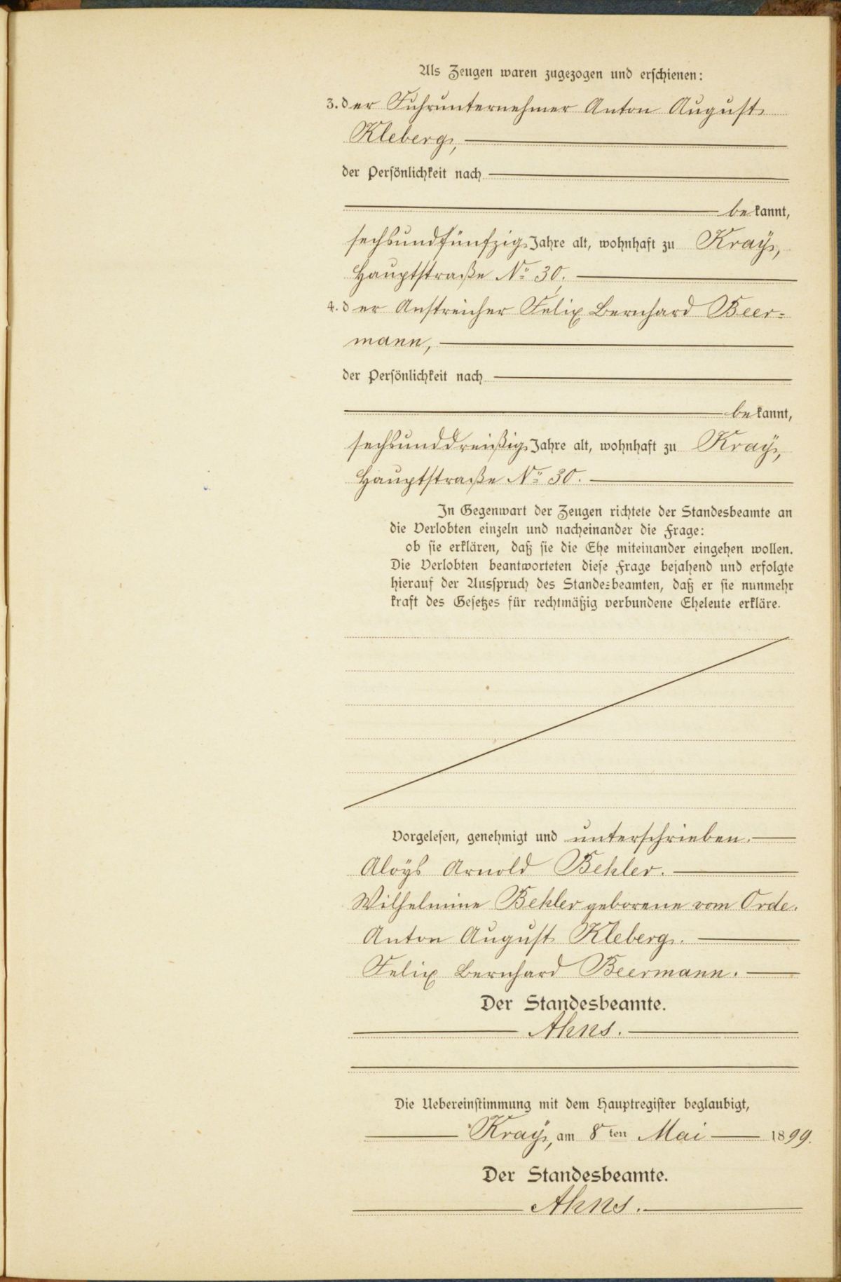 Heiratsregister Nr. 16/1899 Standesamt Essen-Kray