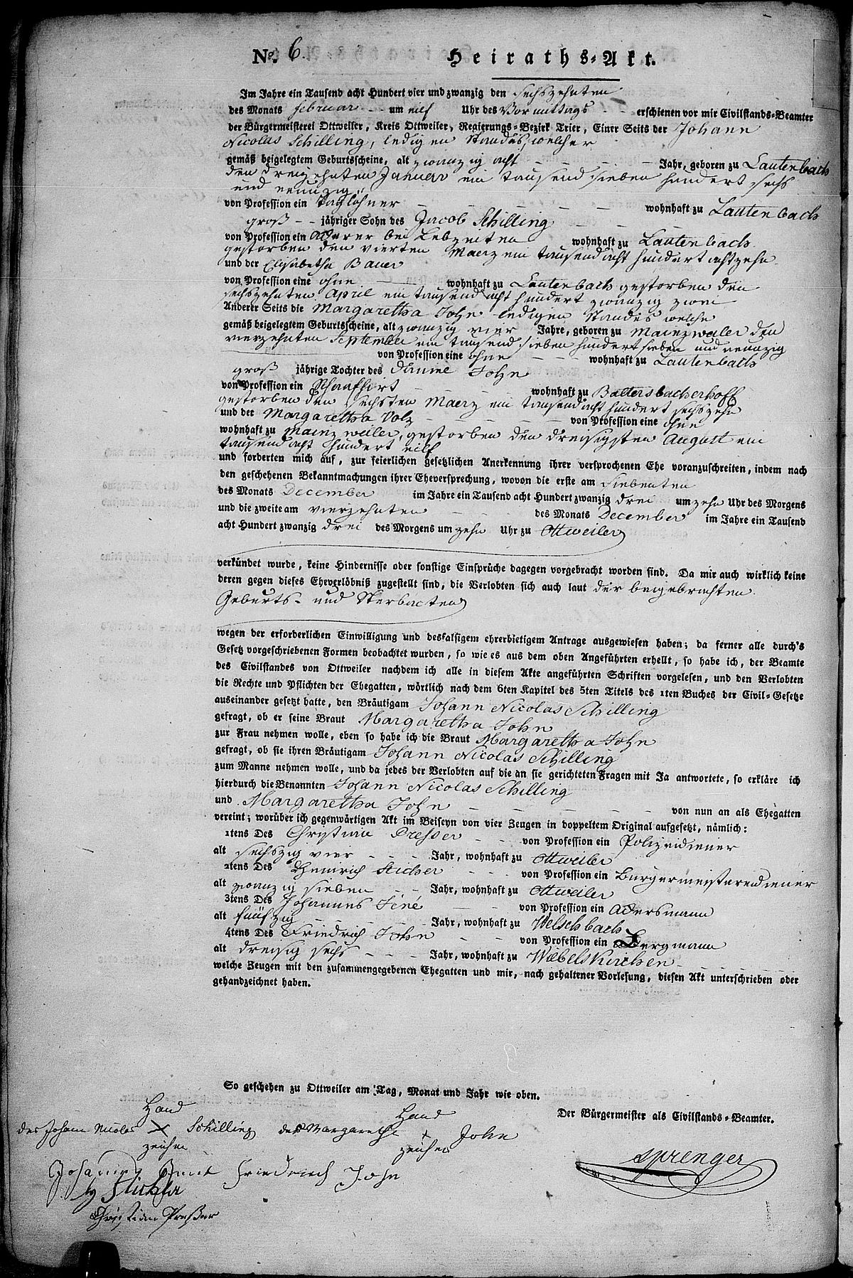 Schilling, Johann NicolasTagelöhner* 13.01.1796 Lautenbach, Ottweileroo 16.02.1824 Ottweiler Dorothea Margaretha Schilling geb. John Erstellt mit dem Programm AHNENBLATT (www.ahnenblatt.de).