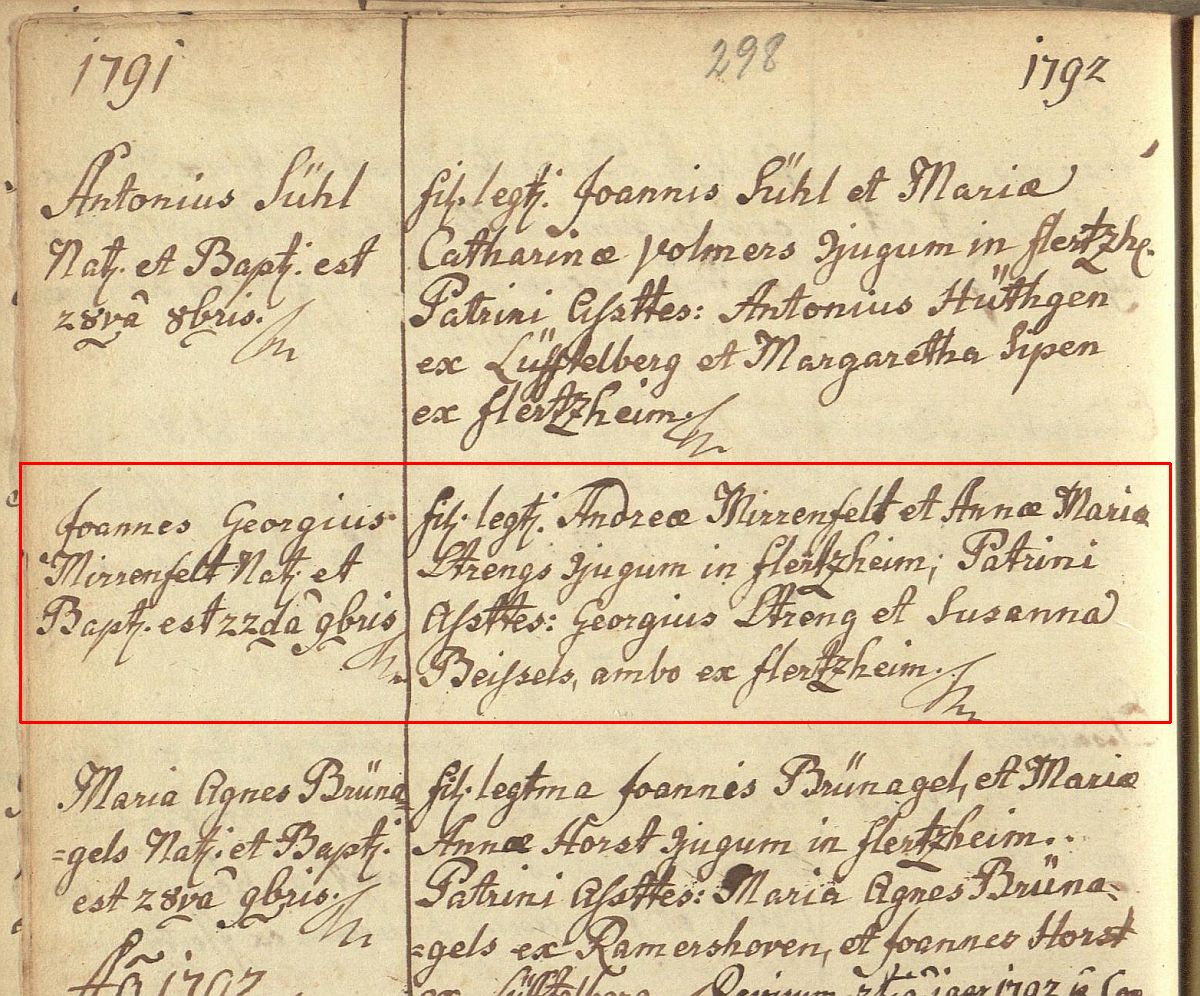 Quelle: Taufeintrag 1791 kath. Kirchengemeinde St. Martin, Flerzheim