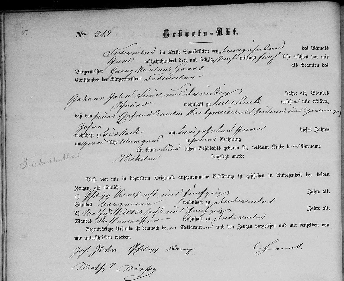 Quelle: Geburtsregister Nr. 313/1863 Zivilstandsregister Dudweiler