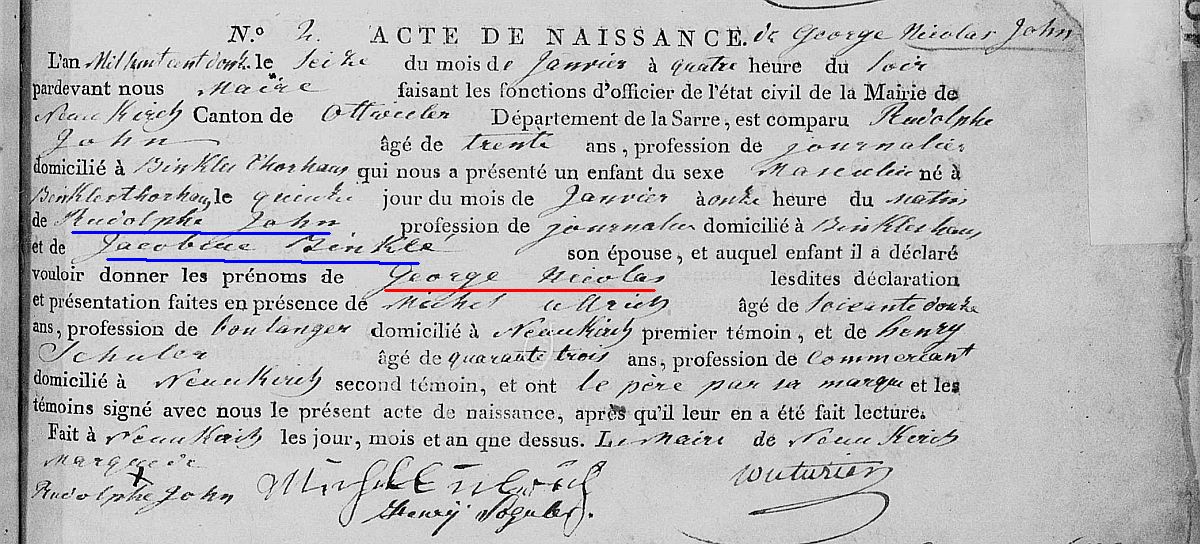 Quelle: Geburtsregister Nr. 2/1812 Zivilstandsregister Neunkirchen