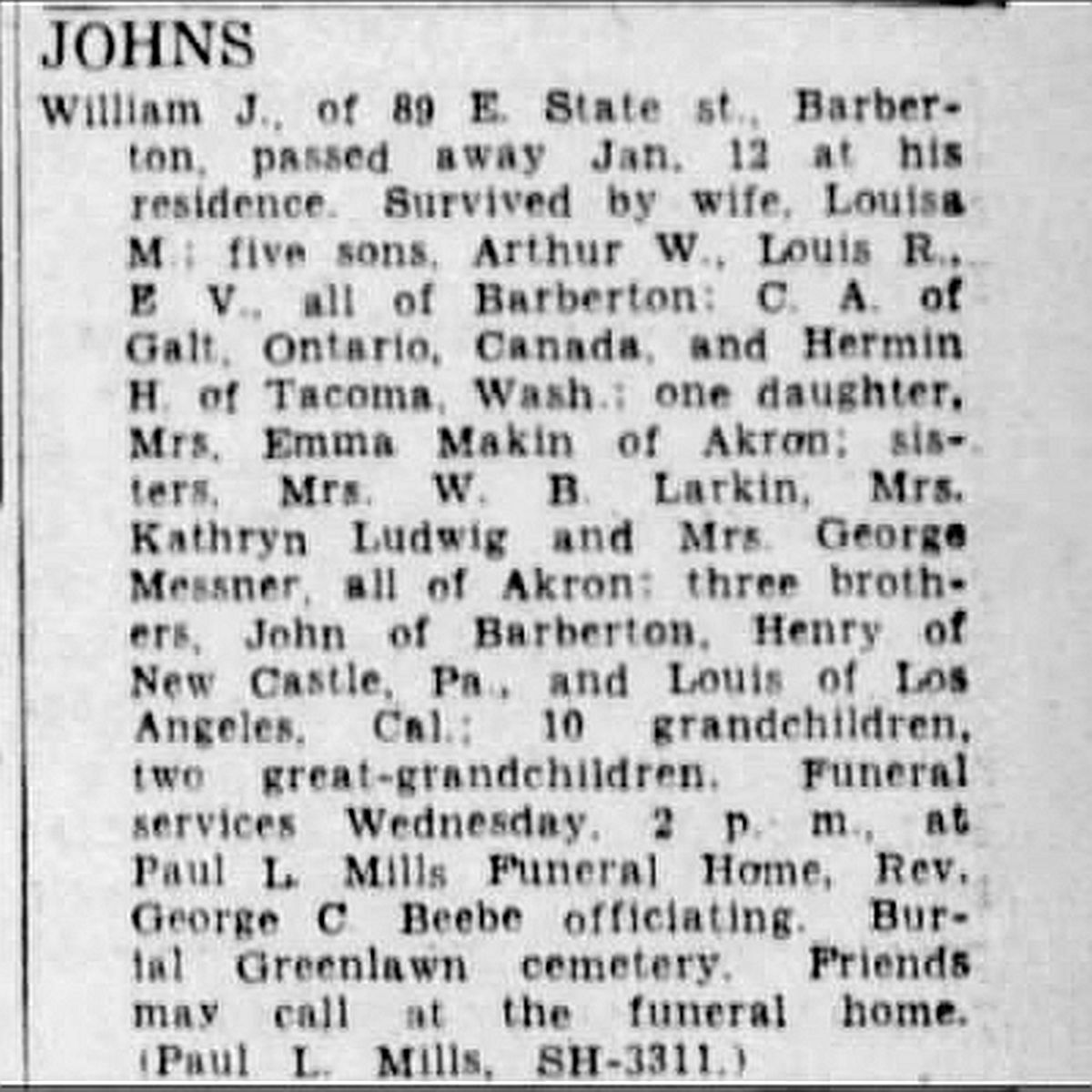 oo 28.01.1890 Akron, Summit, Ohio, USA Louisa Dorothea Johns geb. Nonnweiler