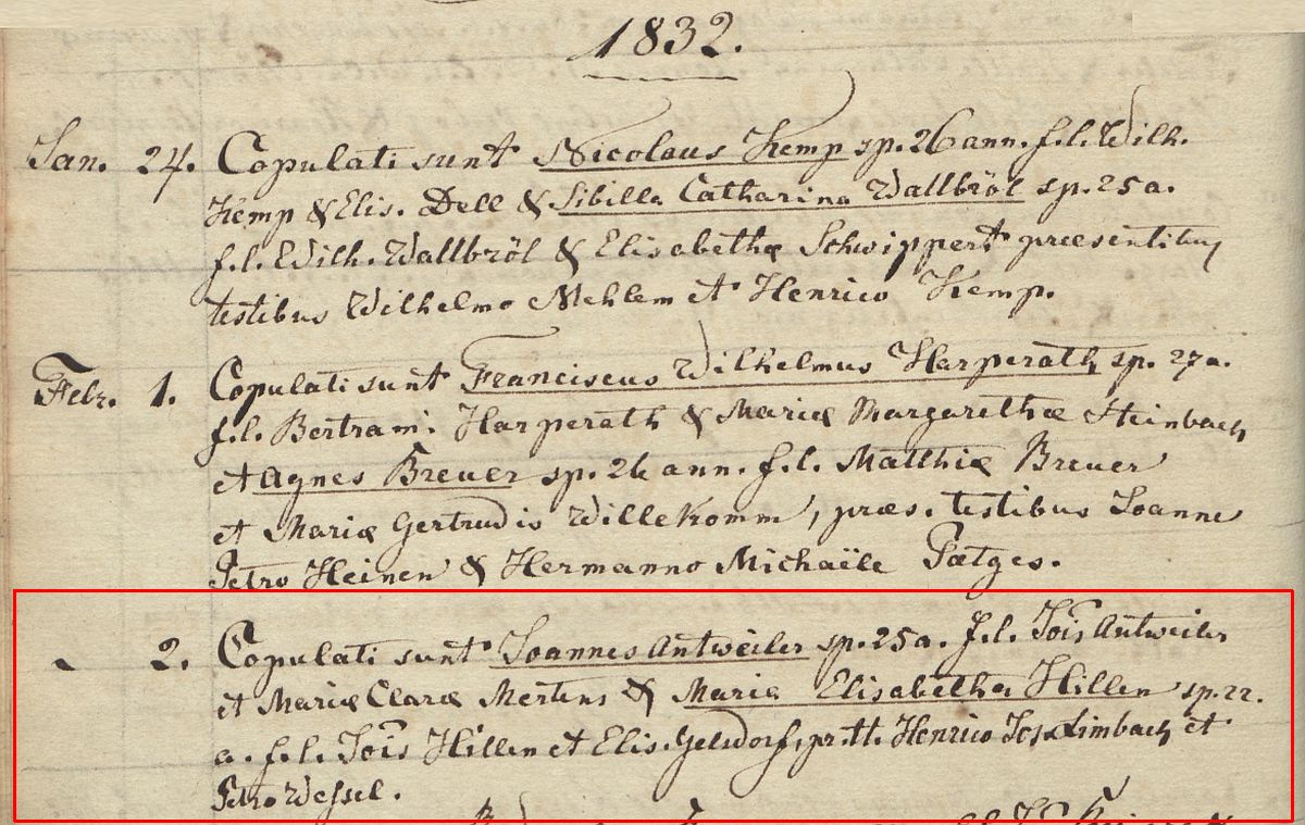oo 02.02.1832 Honnef Maria Elisabeth Antweiler geb. Hillen