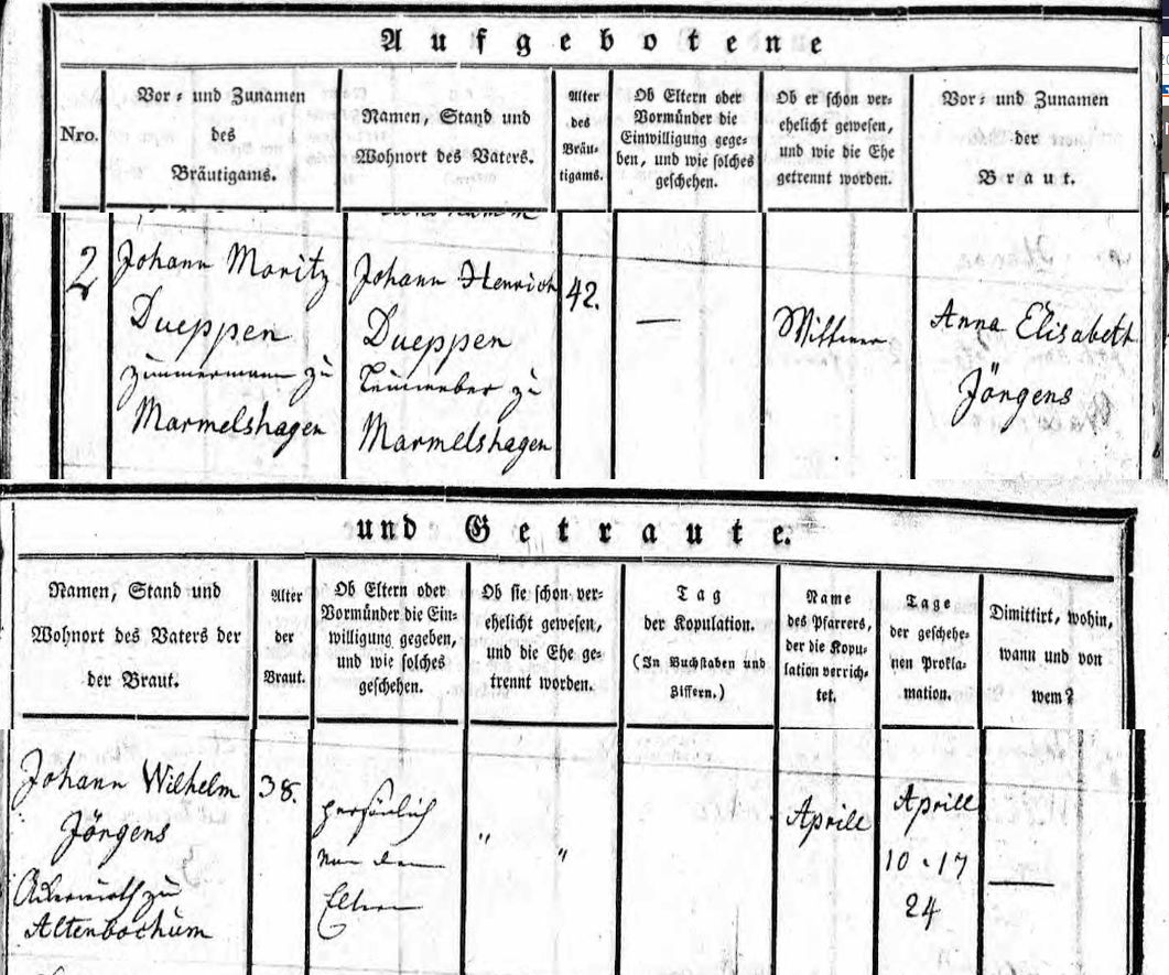 oo 04.1825 Landgemeinde Bochum Johann Moritz Düppe_n