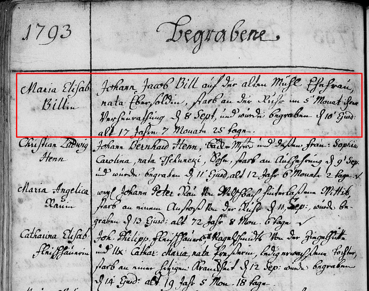 Bill geb. Ebersold, Maria Elisabetha