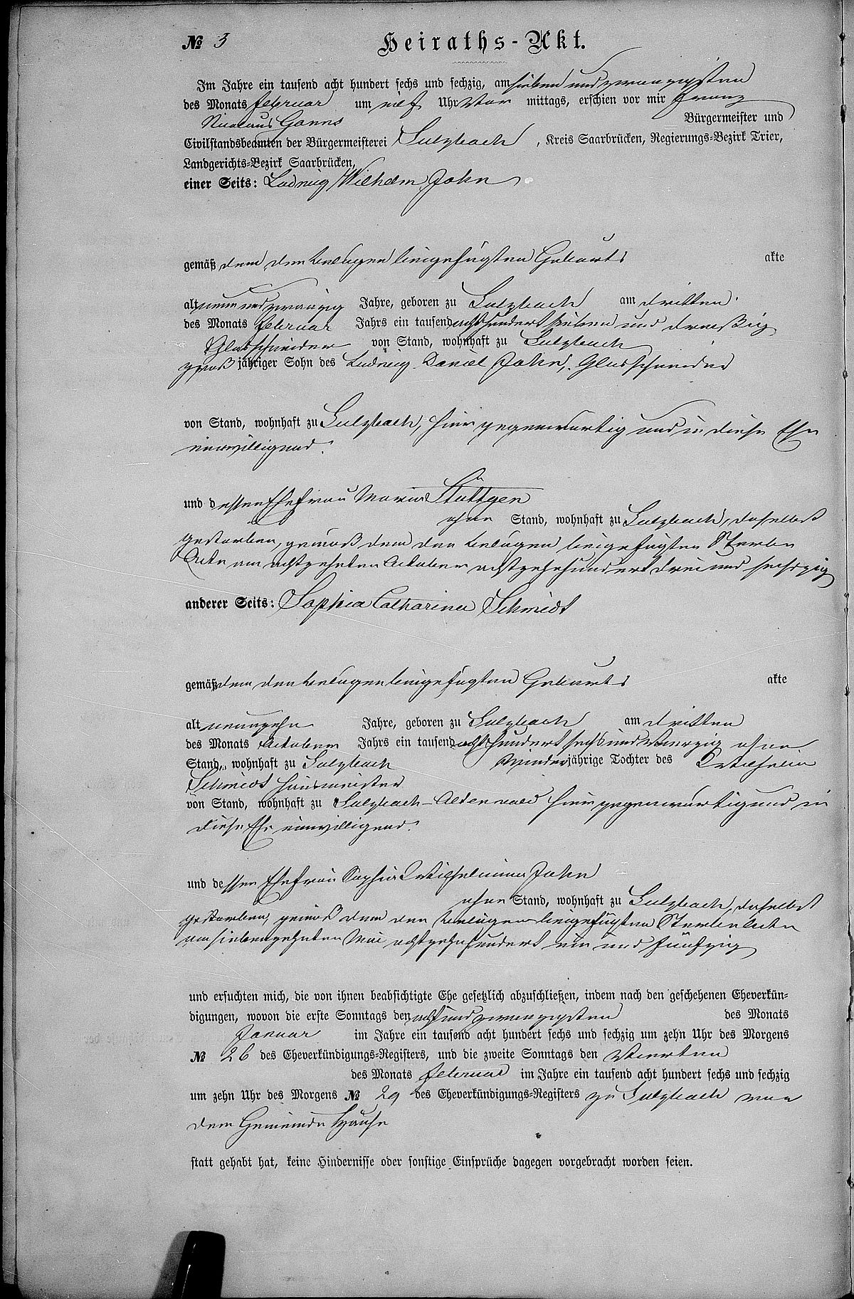Heiratsregister Nr. 3/1866 Zivilstandsregister Sulzbach