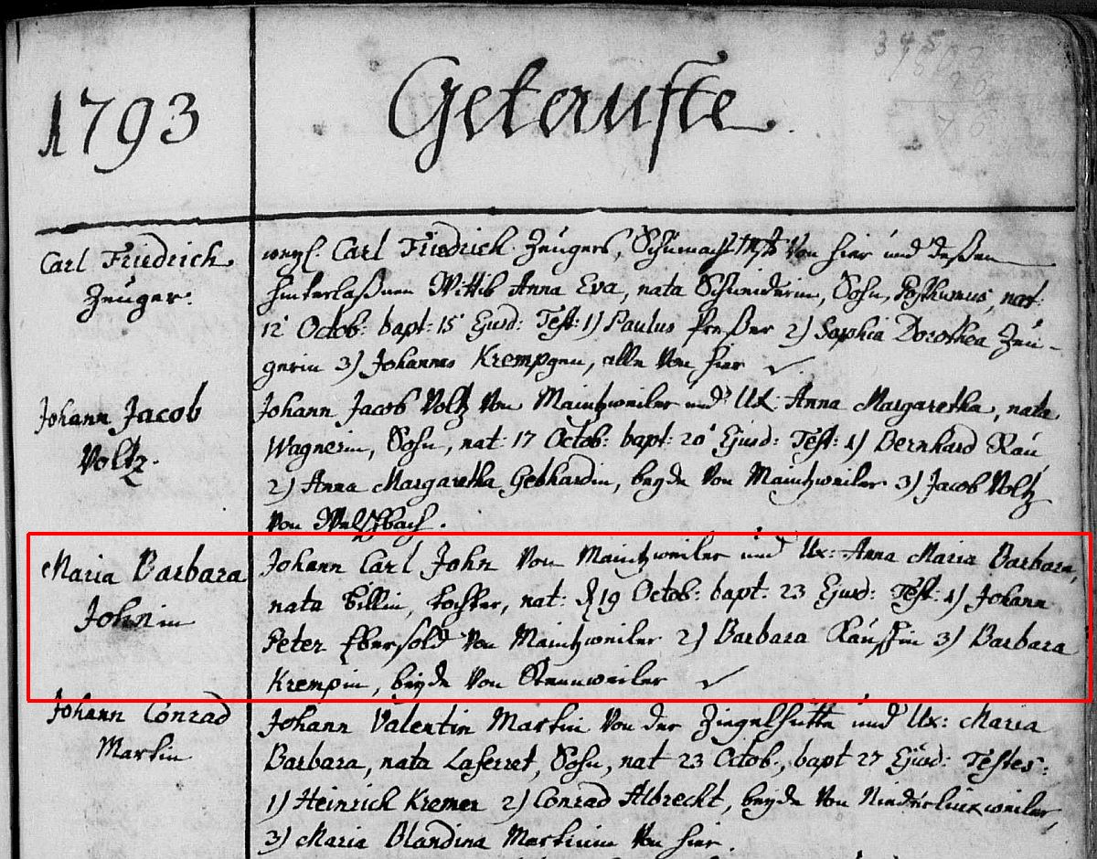 Quelle: Taufeintrag 1793 der ev. Kichengemeinde Ottweiler